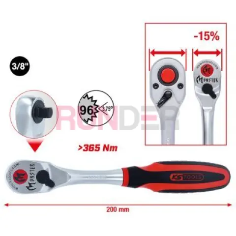 Zeptejte se nás ohledně produktu: Ks Tools - Oboustranná ráčna, Monster 96zubů 3.8"