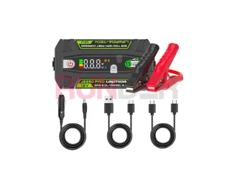 LOKITHOR J2250 PRO je kompaktní multifunkční startovací zdroj s bezpečnou LiFePO4 baterií. Spojuje rychlý booster pro nouzové starty, přenosnou powerbanku s USB-C rychlonabíjením a výkonné LED svítidlo v jednom lehkém zařízení, které si jednoduše uložíte do auta. Je navržen jako spolehlivý pomocník při cestách, v dílně i při outdoorových aktivitách.