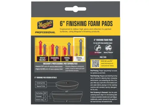 Meguiar’s Professional Finishing Foam Pad 6" je ideální kotouč pro poslední detailingový krok – zajistí rovnoměrnou aplikaci vosků a sealantů a pomůže dosáhnout hlubokého lesku a čistého finiše. V balení jsou 2 kusy, takže je vhodný i pro pravidelné používání.