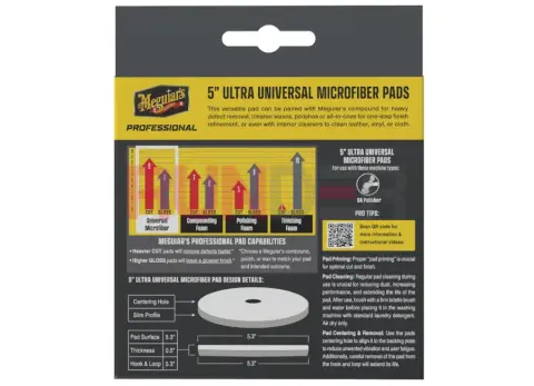 Meguiar’s Professional Microfiber Pad 5" je univerzální mikrovláknový kotouč pro rychlou a účinnou korekci laku na většině karosářských ploch. V balení jsou 2 kusy, takže je ideální pro pravidelné leštění i náročnější detailing.
