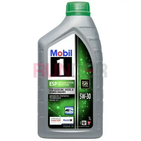 Pokrokový syntetický motorový olej navržen tak, aby poskytoval mimořádnou čistící sílu, ochranu proti opotřebení a celkový výkon. Mobil 1 ESP 5W-30 byl speciálně vyvinut tak, aby pomáhal prodlužovat životnost a udržovat účinnost emisních systémů v dieselových i benzinových automobilech. Mobil 1 ESP 5W-30 splňuje nebo překračuje požadavky mnoha předních průmyslových a automobilových standardů požadovaných pro novější moderní dieselové a benzinové motory osobních automobilů.