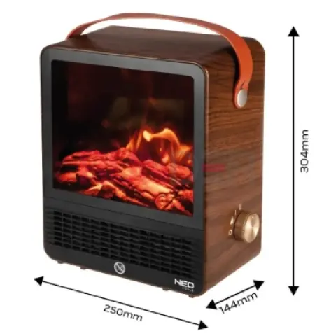 Kompaktní rozměry (25 x 14,4 x 30,4 cm) umožňují snadnou integraci elektrického krbu NEO TOOLS do jakéhokoli prostoru bez ohledu na jeho velikost.