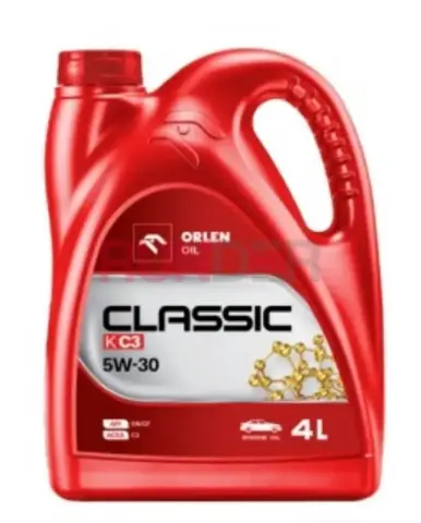 ORLEN OIL CLASSIC K C3 5W-30 je vysoce kvalitní motorový olej určený pro moderní osobní a lehká užitková vozidla. Jedná se o olej formulovaný na bázi syntetických základových olejů s optimalizovaným balíčkem přísad, poskytující spolehlivou ochranu proti opotřebení, stabilitu při vysokých teplotách a kompatibilitu s motory vybavenými filtrem pevných částic (DPF) a kompatibilními systémy vyžadujícími specifikaci ACEA C3 / API SN (CF).