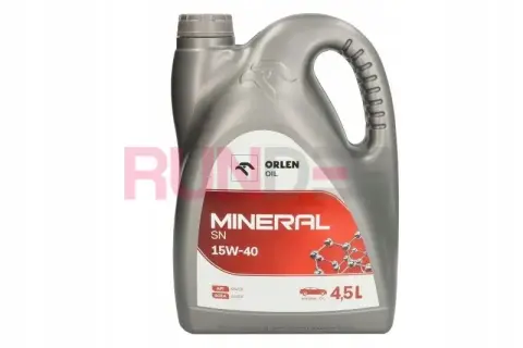 ORLEN OIL MINERAL 15W-40 4.5L je minerální motorový olej SAE 15W-40 dodávaný v praktickém balení 4,5 l. Olej je určen pro běžné motorové aplikace, splňuje označení API SN a je vyráběn společností ORLEN OIL. Jde o ekonomické řešení pro údržbu motorů, kde výrobce povoluje použití minerálního oleje 15W-40.