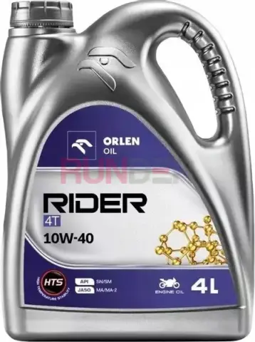 ORLEN OIL RIDER 4T 10W-40 je vícestupňový motorový olej vyvinutý pro čtyřtaktní motory motocyklů. Zajišťuje spolehlivé mazání motoru, převodovky a součástí spojky při běžném i sportovním provozu a je dostupný v praktickém kanystru 4 L — ideální pro pravidelný servis a doplňování v dílně nebo doma.