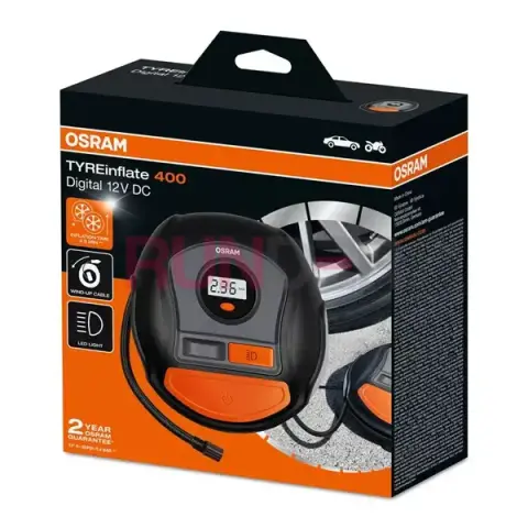 OSRAM TYREinflate je kompaktní 12 V auto-kompresor s podsvíceným digitálním displejem a bílým LED světlem pro pohodlné dofouknutí pneumatik i ve tmě. Podle OSRAM dokáže nafouknout pneumatiku „z prázdné“ přibližně za 3,5 min
