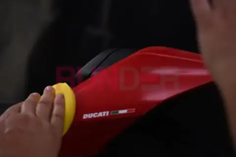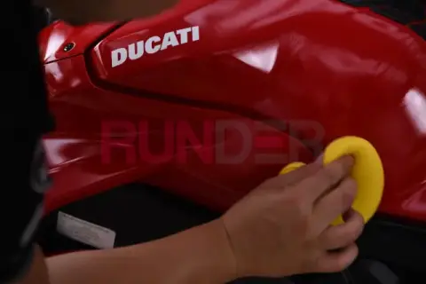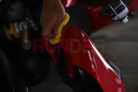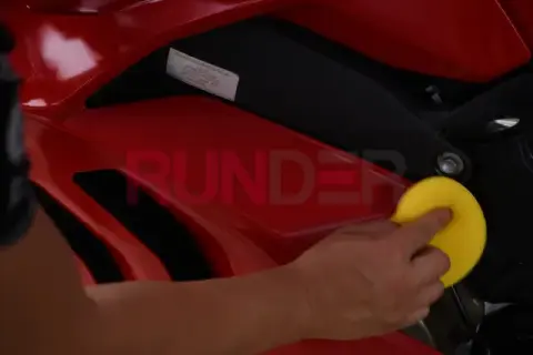 Lakované díly, nádrž, kapotáže (fairing), karbonové panely, plastové kryty, hadice a gumové části mimo kontaktu s úchopem.