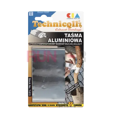 TECHNICQLL ALU Tape je lesklá hliníková páska s vysokoteplotním, tlakově citlivým lepidlem, určená pro opravy a utěsňování výfukových systémů a jiných kovových povrchů. Díky své odolnosti vůči vlhkosti, chemikáliím a vysokým teplotám poskytuje spolehlivé a trvanlivé řešení pro automobilové i technické aplikace. Navíc nabízí vynikající tepelnou vodivost, odolnost proti plameni a odrážení tepla i světla.