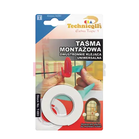 TECHNICQLL Assembly Tape je kvalitní oboustranná montážní páska z pružné PU pěny s kaučukovým lepidlem citlivým na tlak. Je ideální pro rychlou a spolehlivou montáž různých předmětů v interiéru bez nutnosti vrtání nebo použití šroubů. Páska se dokonale přizpůsobí povrchu, vyplní drobné nerovnosti a zajistí pevný a odolný spoj.