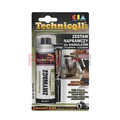 Rychlá a účinná sada pro ošetření a opravu hydraulických brzdových komponentů. Tato sada obsahuje rychleschnoucí odmašťovač pro čištění kotoučových a bubnových brzd, spojkových lamel a mazivo na brzdové písty (BRAKE GREASE M-799).