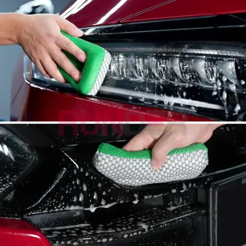 Fotografie je pouze ilustrační. Houbu používej vždy s dostatečným množstvím vody nebo čisticího přípravku. Na laku začni bílou stranou a netlač zbytečně silně, abys minimalizoval riziko mikroškrábanců.
