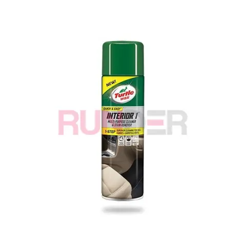 Turtle Wax Interior One účinně odstraňuje skvrny a nečistoty ze všech druhů textilií, vinylu a koberců , takže vaše auto či domácnost budou vždy vypadat tím nejlepším možným způsobem. Formulace tohoto výrobku obsahuje pohlcovač pachů, který okamžitě eliminuje nepříjemné zápachy, čímž vytváří příjemné prostředí pro vás a vaše blízké. Díky rychleschnoucím účinkům, Turtle Wax Interior One zanechává upravené povrchy téměř suché na dotek, takže nemusíte trávit dlouhé hodiny čekáním, než se povrchy uschnou. Je velmi jednoduchý na použití a jeho výsledky vás jistě překvapí.