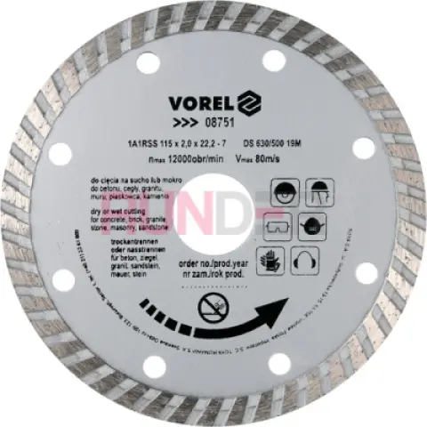 Zeptejte se nás ohledně produktu: Vorel - Kotouč řezný diamantový Ø115x22.2x2.0mm turbo