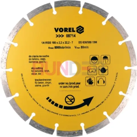Zeptejte se nás ohledně produktu: Vorel - Kotouč řezný diamantový Ø180x22.2x2.2mm segmentový