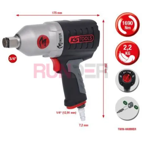 Zeptejte se nás ohledně produktu: Vysoce výkonný pneumatický rázový utahovák 3/4" MONSTER, 1690 Nm