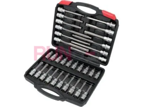 Sada kvalitních nástrčných prodloužených klíčů Torx s bitem pevně spojeným s hlavicemi se čtyřhranem 1/2".