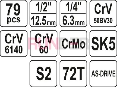 Zeptejte se nás ohledně produktu: Yato - Gola sada 1/2", 1/4" +příslušenství 79ks