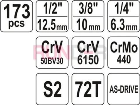 Zeptejte se nás ohledně produktu: Yato - Gola sada 1/4", 3/8", 1/2" 173ks
