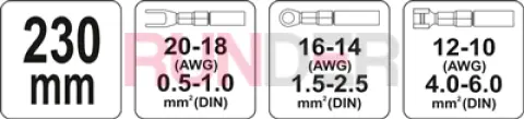 • Kleště YT-2300 na krimpování izolovaných konektorů, se zčerněným povrchem, který chrání před korozí, a s plastovými kryty rukojetí.