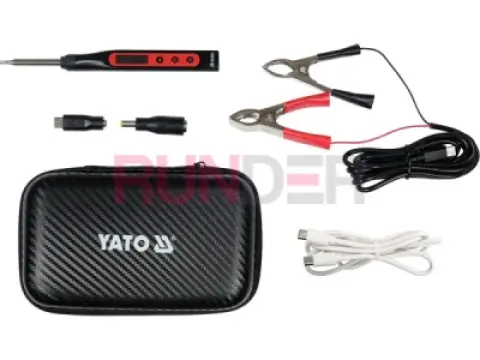 Přenosná digitální páječka s hroty T-12 napájenými přes port USB-C. Hroty T12 kombinují odporový drát s keramickým pouzdrem, teplotní senzor a vysoce kvalitní pájecí hrot. Integrovaný design hrotu umožňuje rychlé nahřátí a velmi rychlou stabilizaci teploty. Páječka funguje s jakýmkoli zdrojem napájení s napětím 9 až 24 voltů stejnosměrného proudu a proudovým výstupem více než 1,5 A. Patří sem rychlé nabíječky telefonů, napájecí zdroje pro notebooky, powerbanky s porty QC nebo PD, lithium-iontové baterie, některé cestovní adaptéry YATO a mnoho, mnoho dalších.