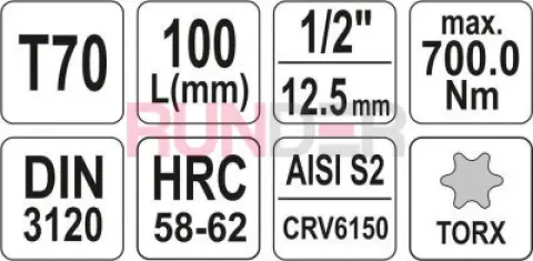 Zeptejte se nás ohledně produktu: Yato - Nástavec vnitřní TORX L100mm 1/2" T70