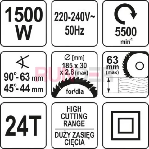 • vysoká rychlost otáčení: 5500 ot/min zajišťuje přesnost a rychlost řezání