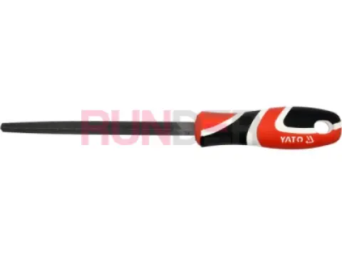Pilník s trojúhelníkovým profilem, kuželový, jednou řezaný, 150 mm, s tříkomponentní rukojetí Yato.