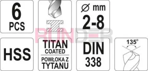 Zeptejte se nás ohledně produktu: Yato - Sada vrtáků do železa HSS-TIN 2, 3, 4, 5, 6, 8mm 6ks
