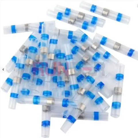 Průhledná teplem smrštitelná bužírka YT-81442 s cínovým kroužkem uprostřed a dvěma termolepicími kroužky po stranách, které dodatečně utěsňují spoj.