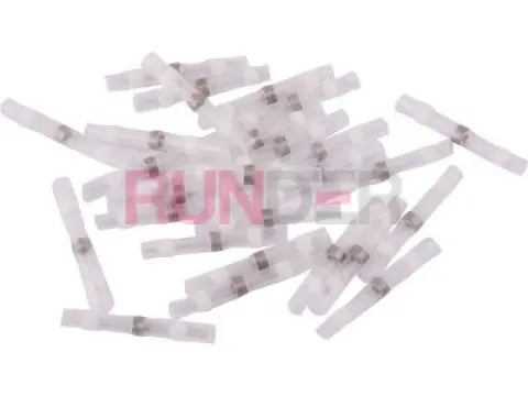 Průhledná teplem smršťovací bužírka YT-81440 s cínovým kroužkem uprostřed a dvěma termolepicími kroužky po stranách, které dodatečně utěsňují spoj.